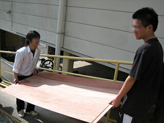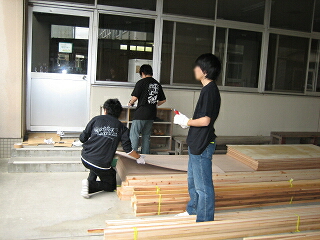 ![]() 委員長のダンディーな声のカウントダウンで作業開始!! ![]() 開始10分、既に準備が着々と進んでおります。ね。 ![]() 校外からも材料調達します。このダンボールは某Eストアからでしょうか。 ![]() 木材係もカウントやら仕分けやらを始めています。 ![]() 頑張れ!そして頑張れ!さらに頑張れ! ![]() ブルーシートを固定します。 ![]() リサイクルベニヤ板の配布も順調のようです。 ![]() はるばる遠くの木材配布場所から駐輪所(作業所)へ。お疲れ様です。 ![]() 集合写真です♪にぎやかで楽しい感じが感じられますね。ね? |