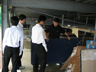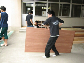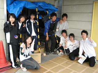| -待ちに待ちまくった作業解禁!!!- 中間テストが終わり、勉強の呪縛から逃れた生徒一同。 だが、彼らは止まらない!そう今日は作業解禁〜! いぇ〜い、ドンドンパフパフ。(棒読み どうやら深夜、雨が降ってたようで、ブルーシートとか木材とか心配でしたが みんなの気持ちがそろったのか、曇りでとどまりましたぜ★ そして、ワタクシ、その歓喜のあまり、変態のごとく写真をパシパシパシとりまくりました。 さぁ、ご覧下さいませ! |